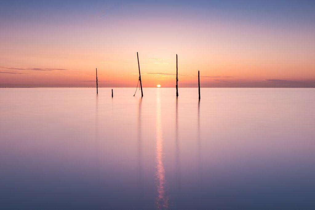 Zonsondergang is nu vrij laat, waardoor de meeste mensen al naar huis zijn op het strand. De rust keert weer terug. Ook de temperatuur daalt, dus het is gelijk fijn om zelf even af te koelen na een warme dag. Probeer te gaan tijdens afgaand water. Aan de waterkant komen er dan nieuwe structuren vrij waar nog niet op gelopen is. Ook heb je deze tijd van het jaar grotere kans op rustig water. Met een lange sluitertijd (door middel van grijsfilters) krijg je een mooi sereen beeld. Wil je meer leren over lange sluitertijden? Volg dan eens een workshop bij Karin of bij mij.Â